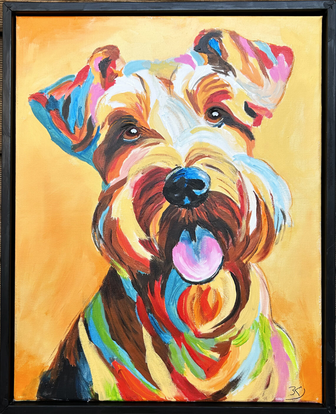 LikeAbleHvis jeg nu er rigtig sød, skal vi så ud at gå? Unika maleri. 40 x 50 cm med ramme. Akryl på lærred. 2000 DKK